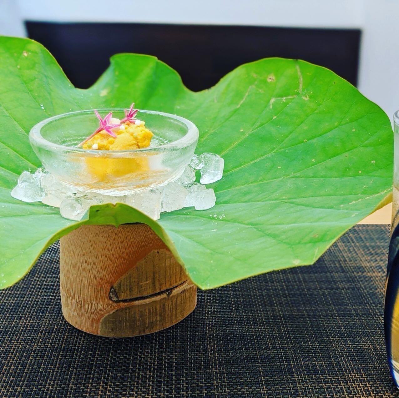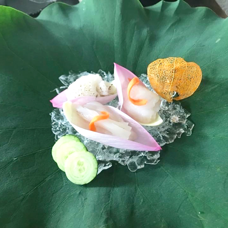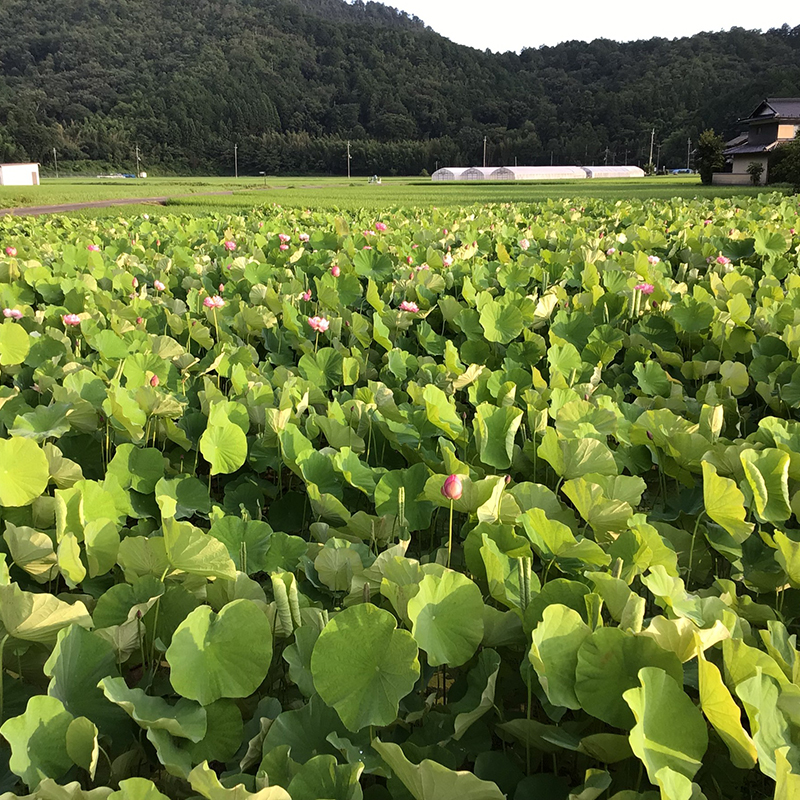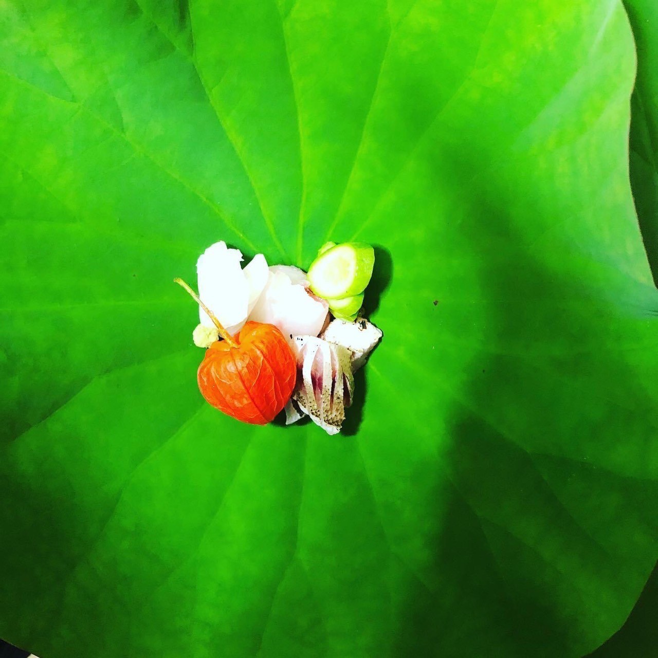 izumi gardenで収穫した蓮の葉は、料亭などの飲食店様から、お料理のお皿としてもご注文いただいております。