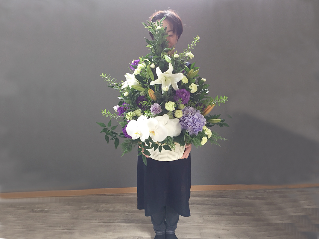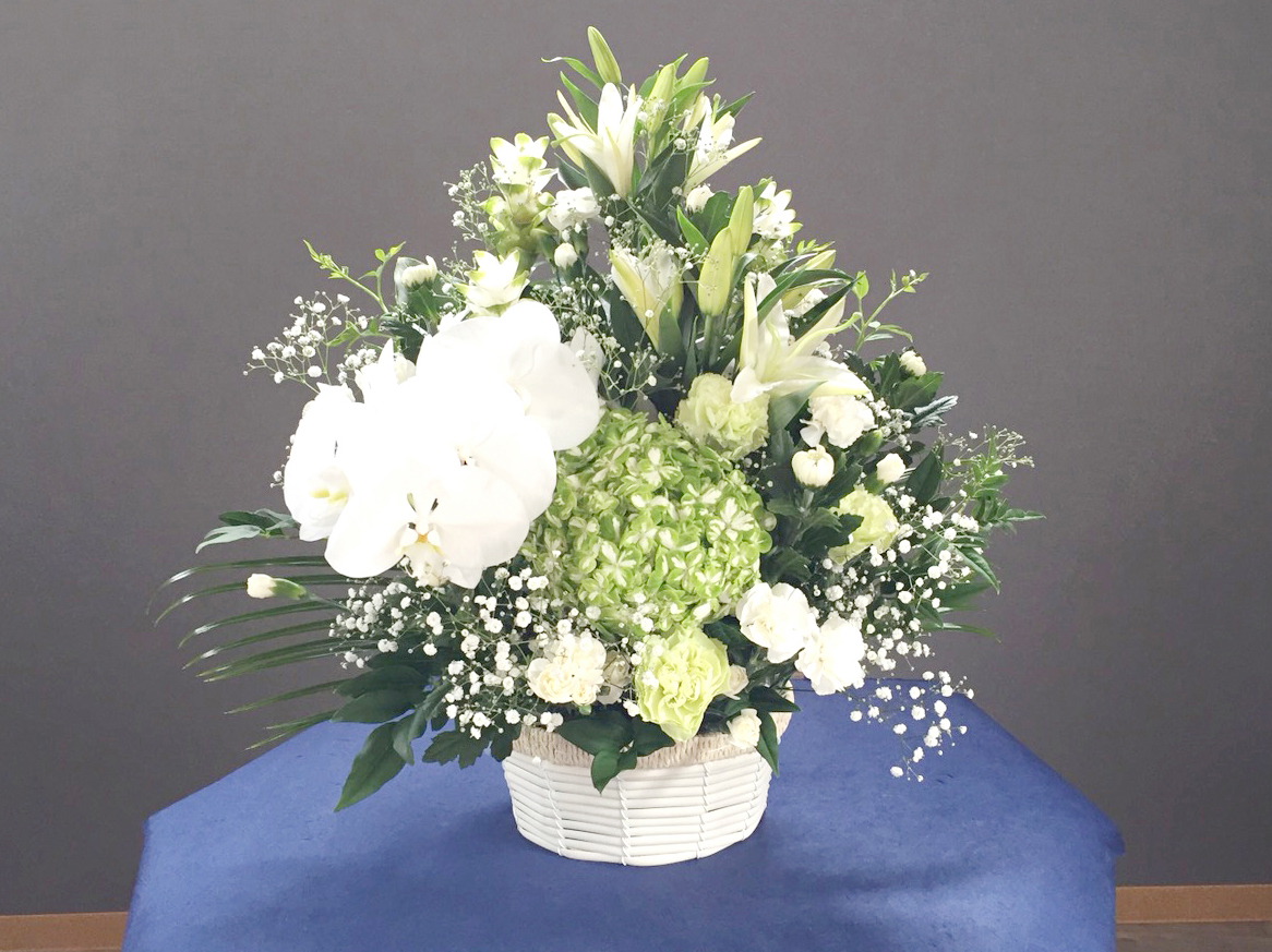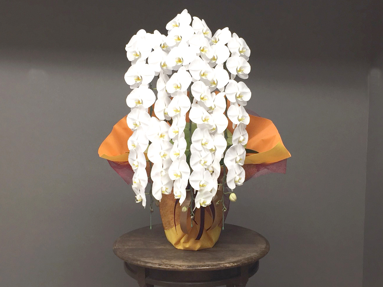 また、御供として胡蝶蘭を贈られる場合は、ラッピングのお色を落ち着いた色で、上品に仕上げます。