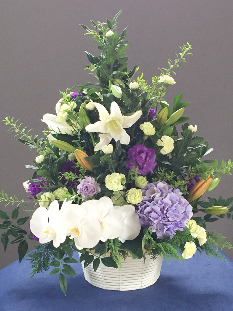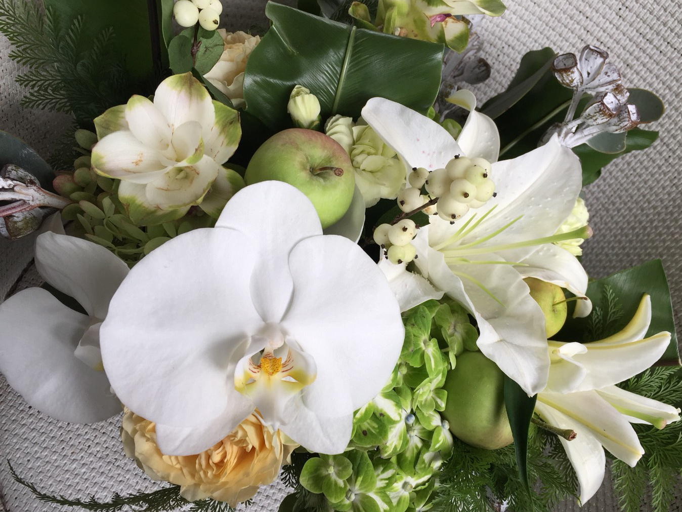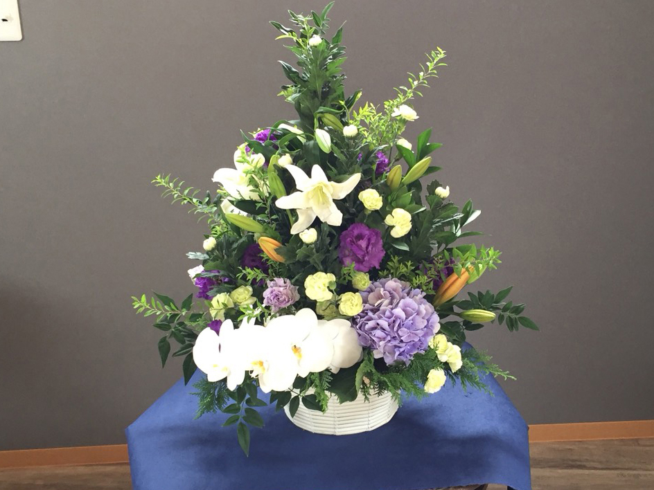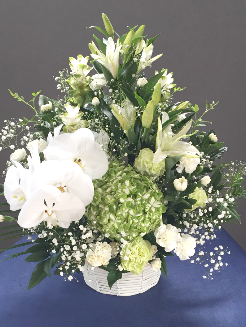 また、御供として胡蝶蘭を贈られる場合は、ラッピングのお色を落ち着いた色で、上品に仕上げます。